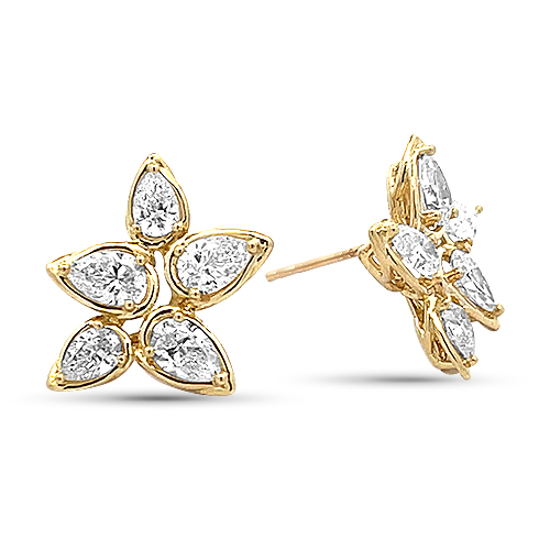 Showcase fashion like a true fashionista with the perfect accessory by wearing this pair of shimmery diamond Astra cluster studs totaling 2.10ctw and crafted in 14Kt yellow gold.