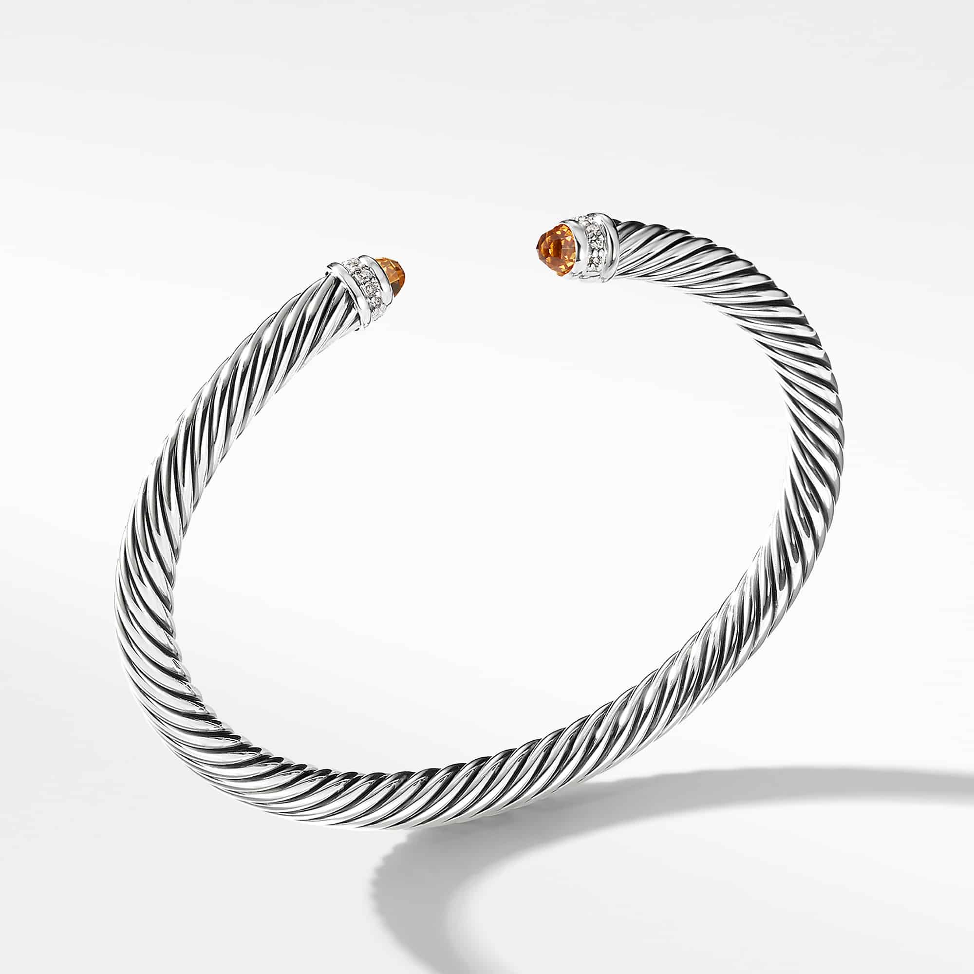 Classic Cable Bracelet in Sterling Silver with Citrine and Diamonds, 5mm