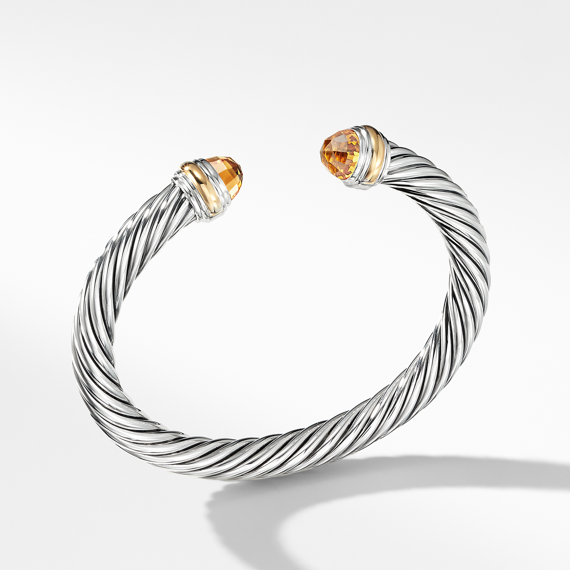 Classic Cable Bracelet in Sterling Silver with 14K Yellow Gold and Citrine, 7mm