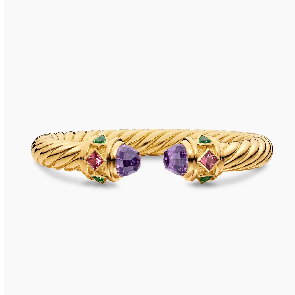 18K Yellow Gold with Amethyst, Pink Tourmaline and Tsavorite, 9mm