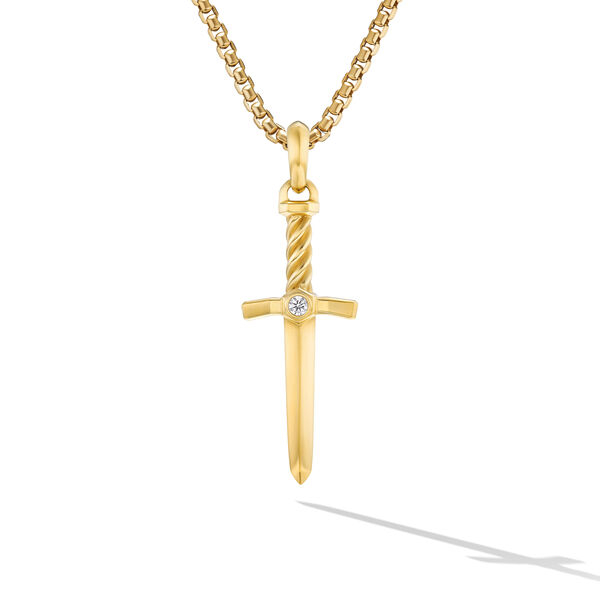 18-karat yellow gold. Diamond, 0.12 total carat weight. Amulet, 45 x 17.3mm. Total length, 56.6mm.