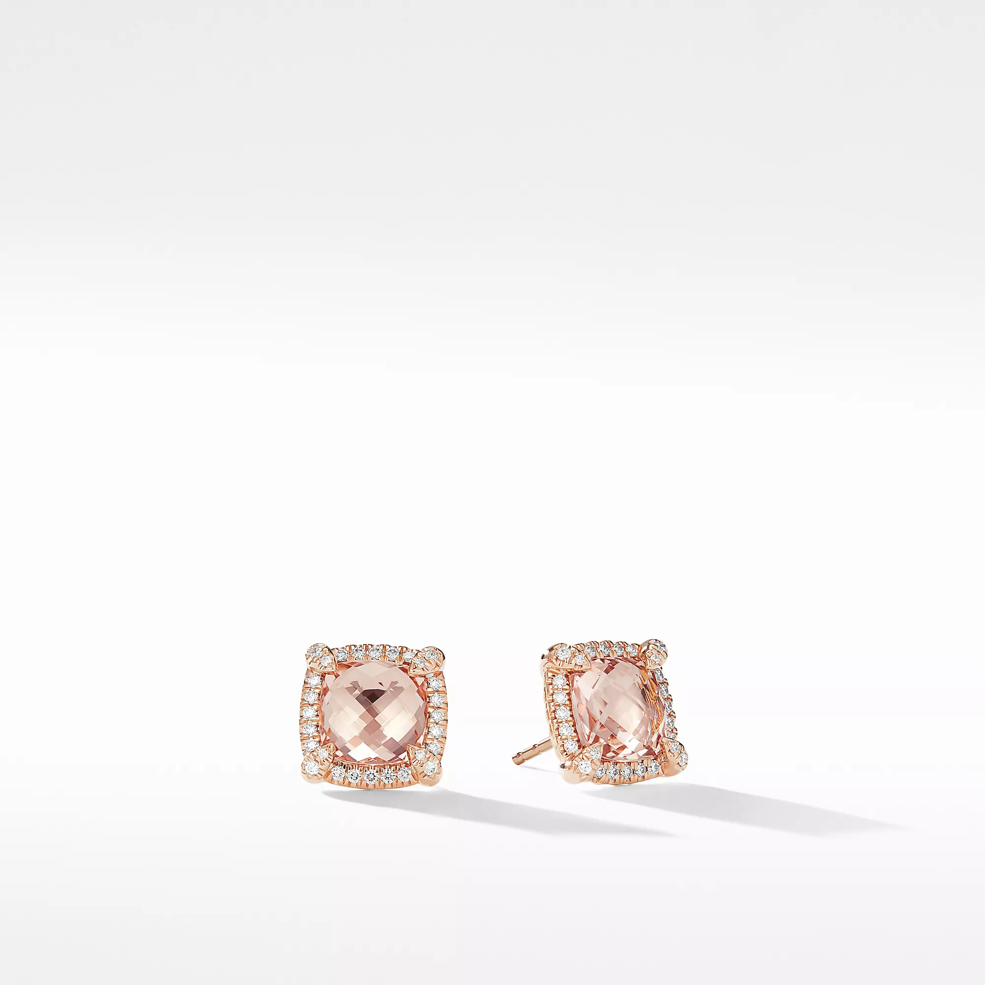 Chatelaine Pavé Bezel Stud Earrings in 18K Rose Gold with Morganite