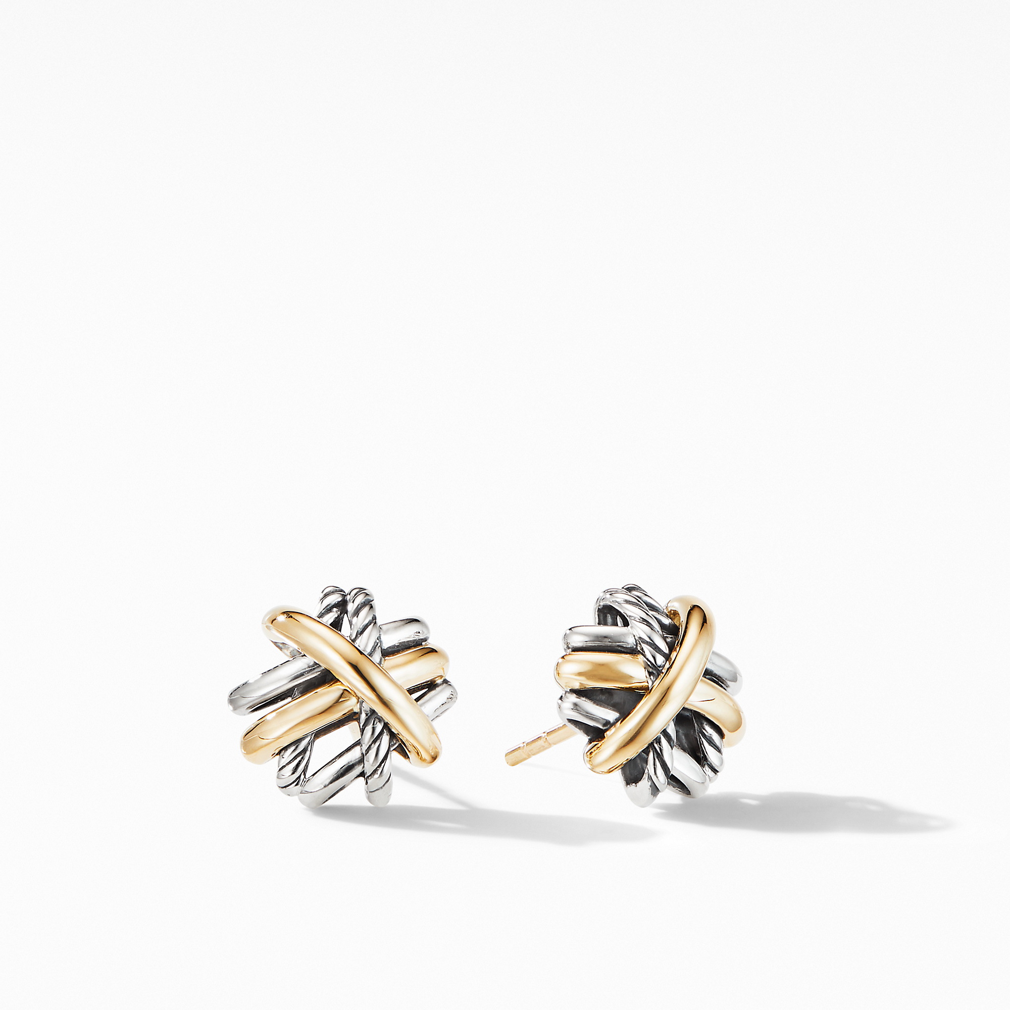 Crossover Stud Earrings in Sterling Silver with 18K Yellow Gold, 11mm