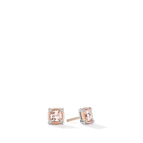 Petite Chatelaine® Stud Earrings with Morganite, 18K Rose Gold Bezel and Pavé Diamonds