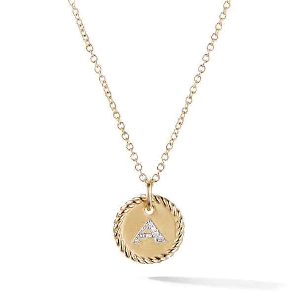 Initial “A” Charm Necklace With Diamonds