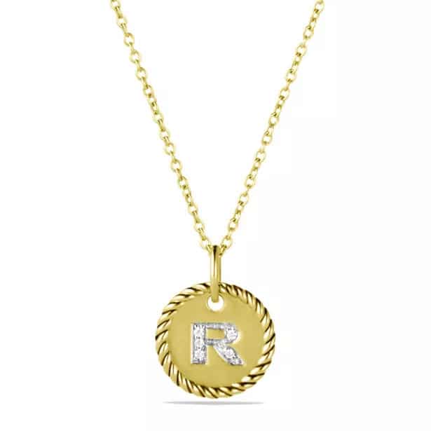 Initial “R” Charm Necklace With Diamonds