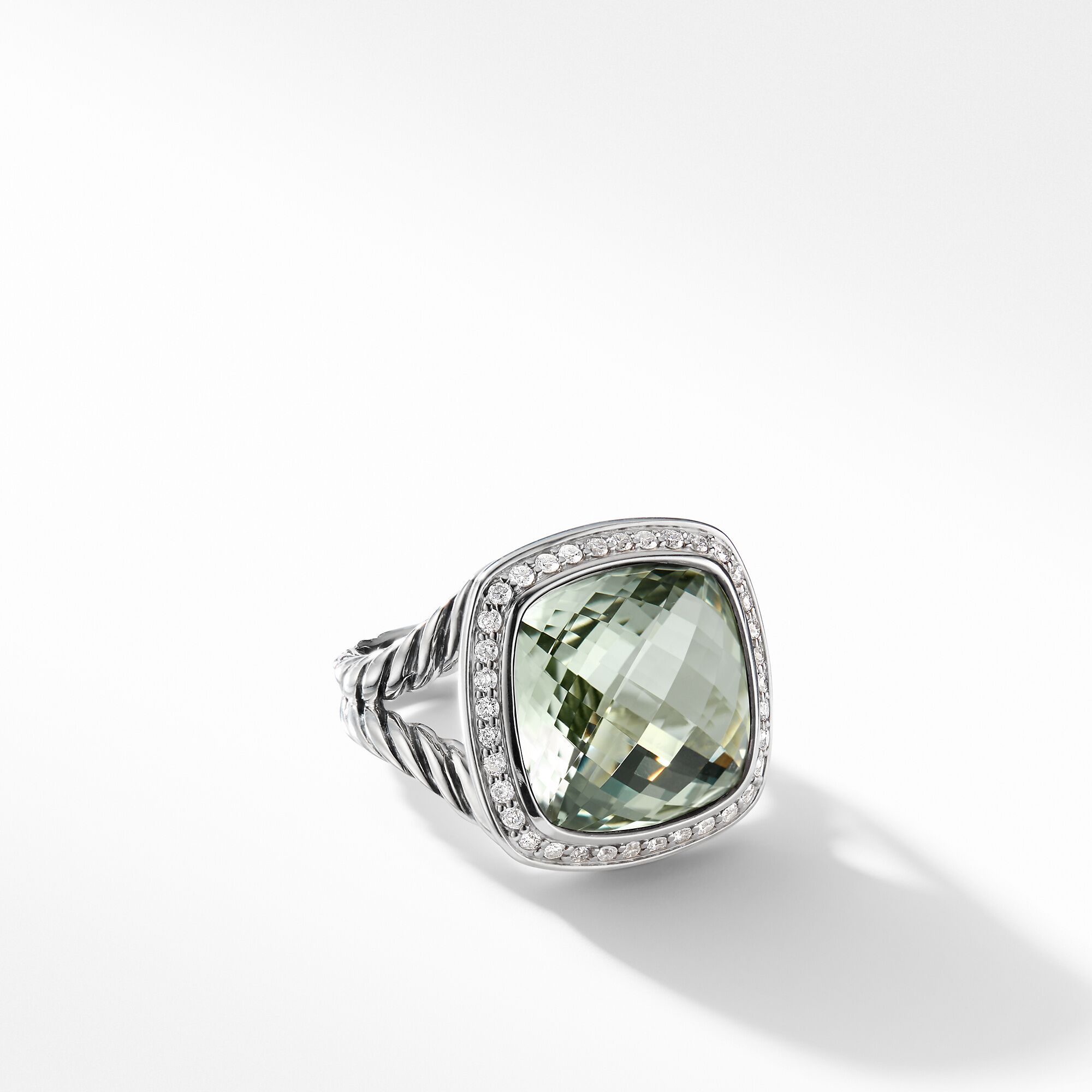 Albion Ring in Sterling Silver with Prasiolite and Diamonds, 14mm