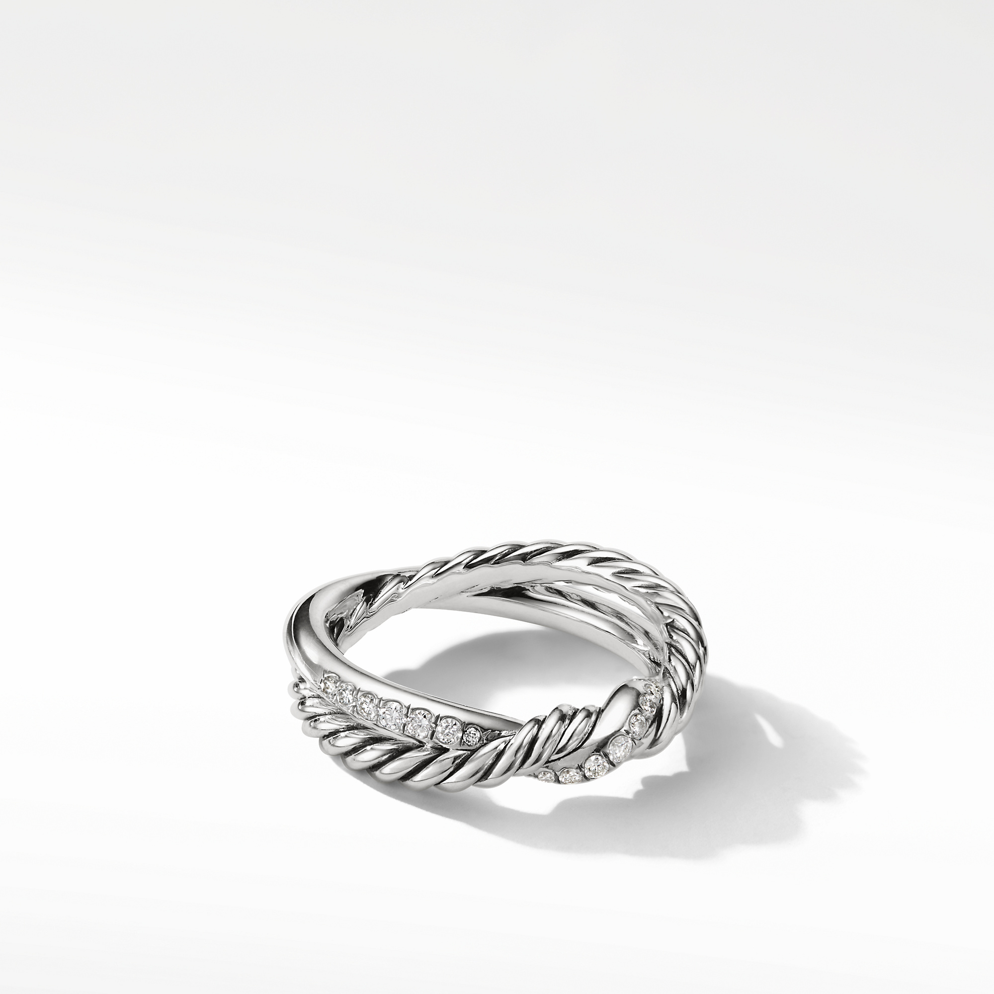 Sterling Silver ’ Pavé Diamonds, 0.19 total carat weight, ’ 2.8mm wide at most narrow point ’ 4.6mm wide at widest point ’ Twisted DY signature Cable and smooth wire