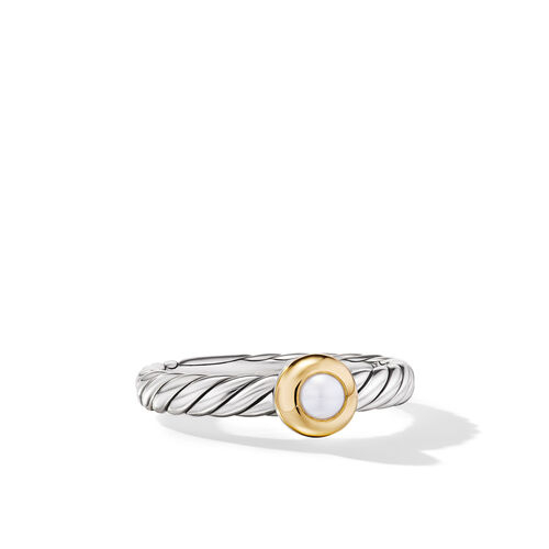 Petite Cable Ring in Sterling Silver with 14K Yellow Gold and Pearl, 2.8mm