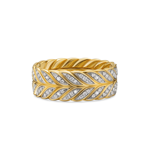 18-karat yellow gold. Pavé-set diamonds, total carat weight ranges from 0.62 to 0.76 (dependent on size). Ring, 9mm.