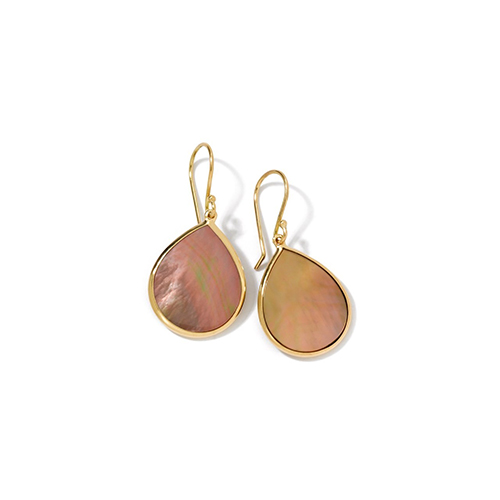 Two slices of rare brown shell are hand selected by IPPOLITA and cut into timeless teardrop shapes. Their surface is polished to a high gloss and framed in a delicate 18K gold setting for a warm glow that will make you shine from morning to evening.
