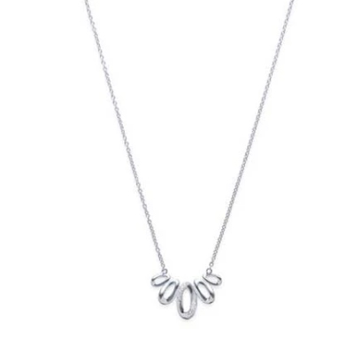Sterling Silver Cherish Mixed Link Pave Diamond Fan Necklace