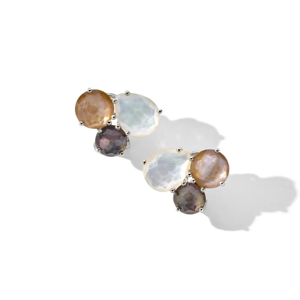 Sterling Silver ‘ Colorway: Sabbia ‘ Gemstones: Black Shell, Brown Shell, Rock Crystal and Mother of Pearl ‘ Length: .7″ Width: .8″