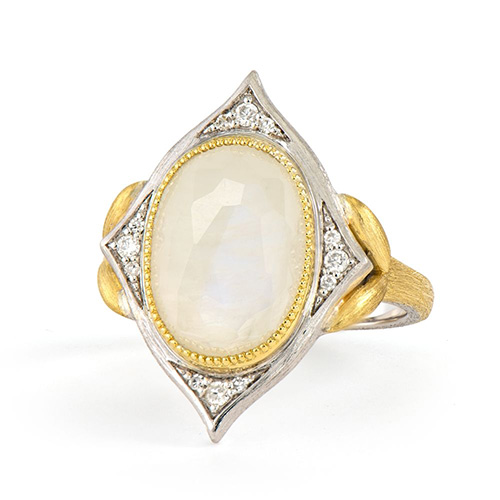 Mixed Metal North South Pointing Moonstone & Diamond Cocktail Ring