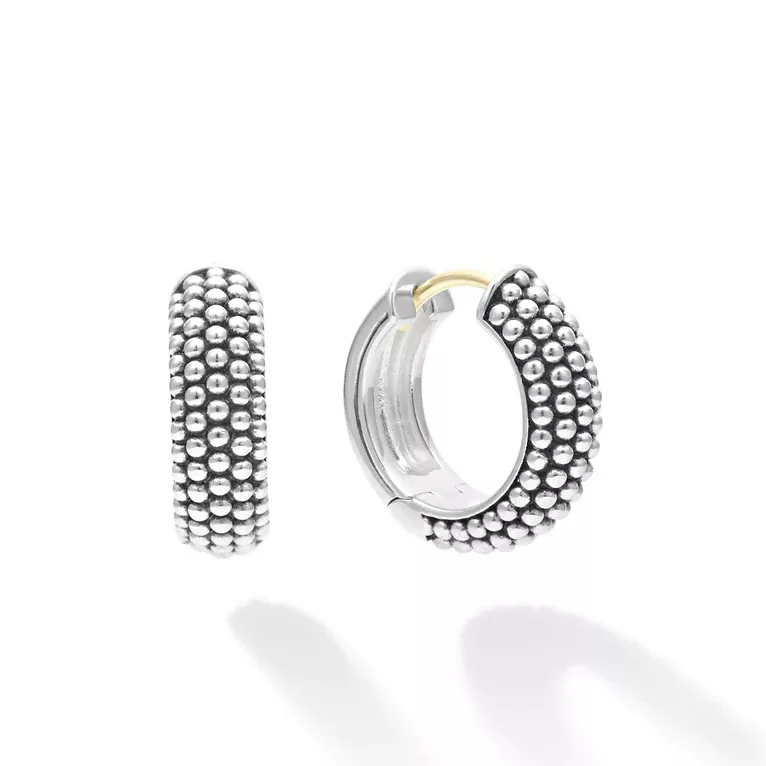 Sterling silver Caviar beading creates these Lagos huggie hoop earrings. Perfect for everyday wear!