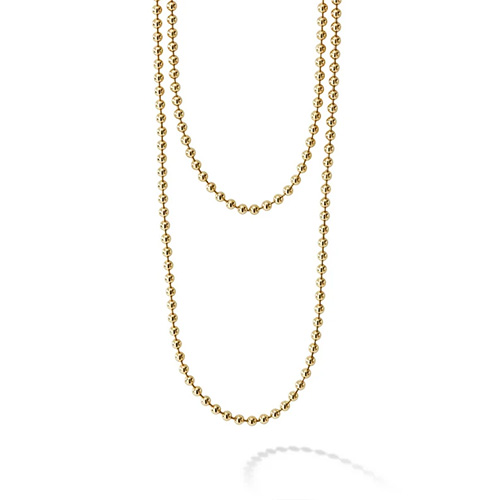 The ideal layering piece. An 18K gold necklace crafted of 18K gold finished with a signature lobster clasp detailing the LAGOS crest.