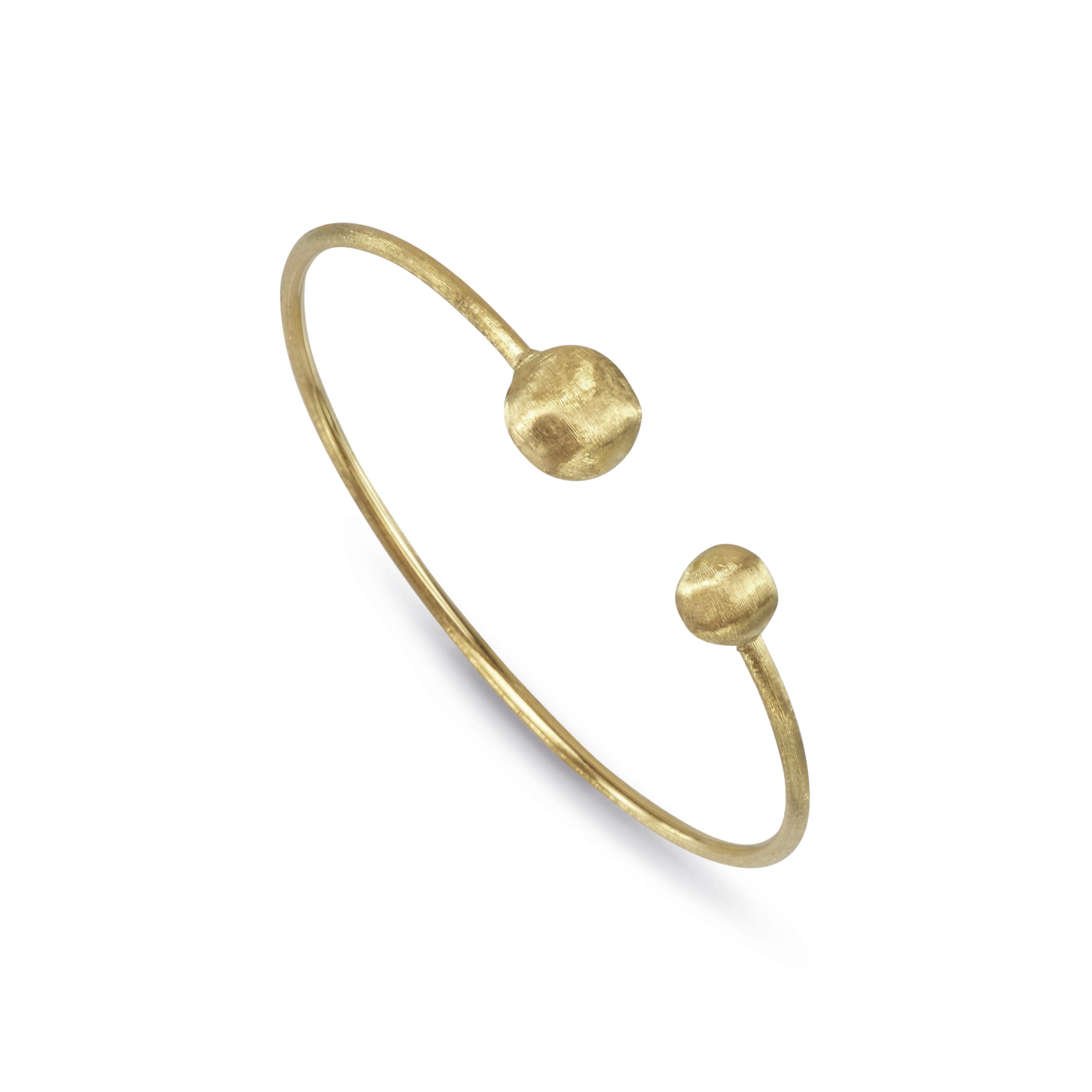 18K yellow gold kissing bangle. Inspired by tribal jewelry and the soft dunes of the Sahara, this Africa Gold Bracelet is hand engraved by Italian artisans.