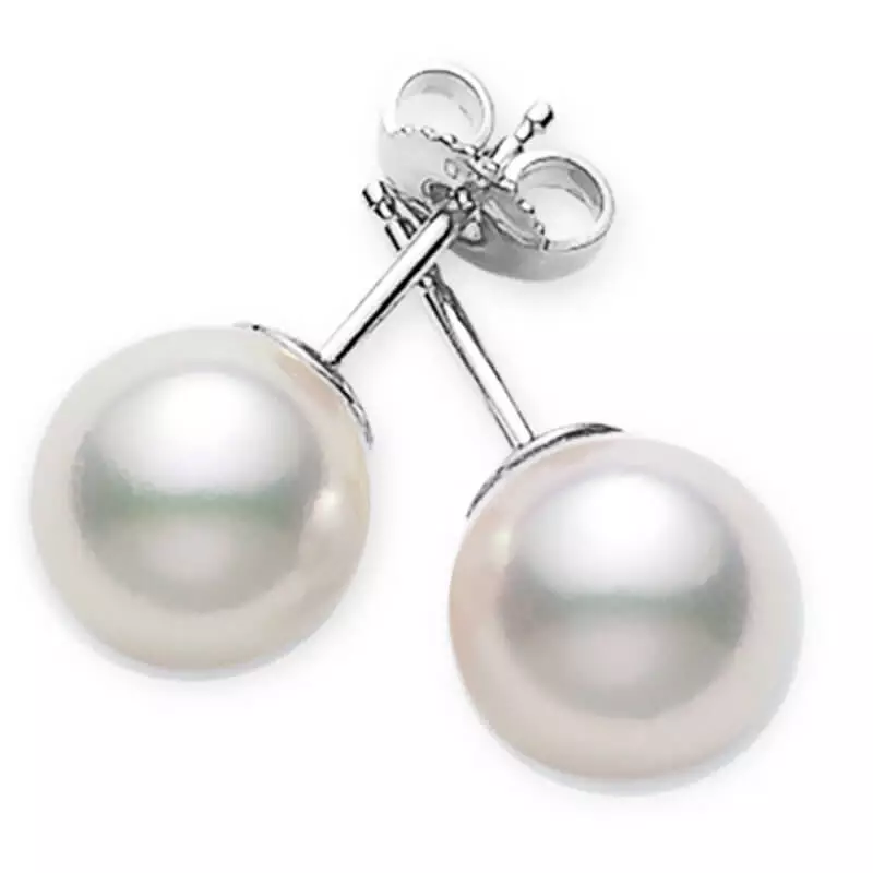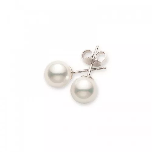 18kt. white gold 6-6.5mm Akoya cultured pearl studs graded AA in quality by Mikimoto.