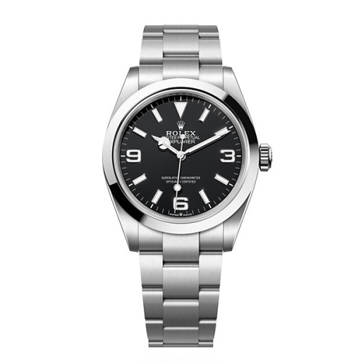 This reconditioned Rolex Explorer (M14270) is one of the simplest models in the Rolex sports watch catalog. While it doesn’t boast a timing bezel like other sports watches, the watch does offer incredible durability and a legible reading. A tough stainless steel finish with a contrasting black dial topped with lume, the Oyster case is waterproof and is paired with an equally tough Oyster bracelet with three-piece links and an Oysterlock clasp. Recenlty serviced by our in-house Rolex watch technician, this watch comes with a 2-year warranty on parts and labor and our gift to you – a Wolf 1834 watch winder.