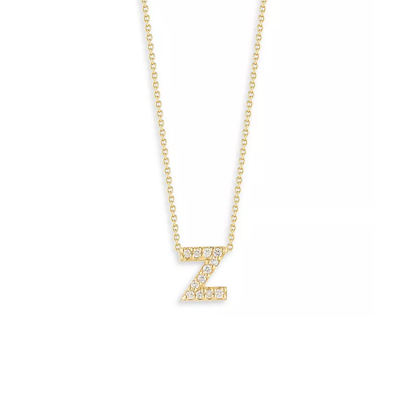 18K yellow gold love letter “Z” necklace with diamonds from Roberto Coin’s Tiny Treasures Collection.