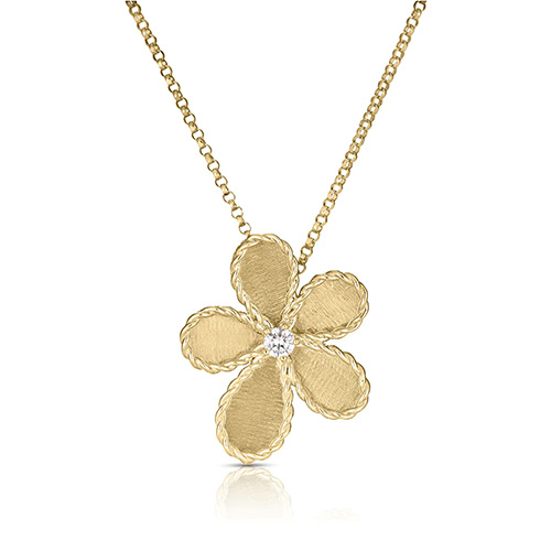 Roberto Coin Diamond Flower Necklace with 0.06ct round diamond.