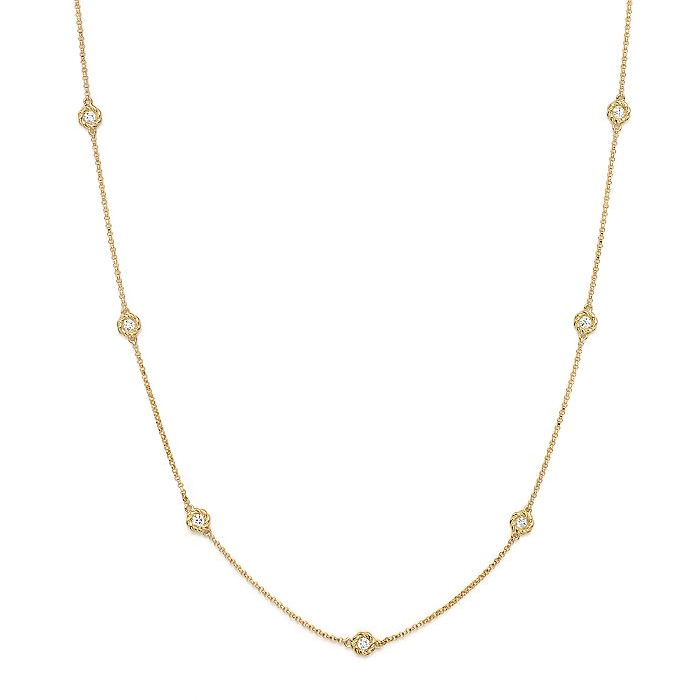 18K yellow gold 9 round diamond station New Barocco necklace.