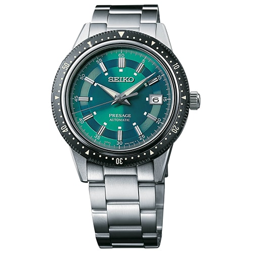 Stainless steel 41.3mm limited edition green dial Presage Seiko watch. This watch features an automatic movement with manual winding capacity and date. Limited edition of 1,964.