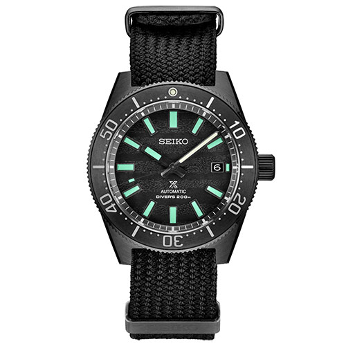 This is a black version of JapanÂ’s first-ever diverÂ’s watch, the model from 1965 that is known to fans as the 62MAS. While the stealth design reflects its heritage, every aspect of this new creation is fully up to date in specification and execution. The bevel between the upper case and case side, as well as the surface around the bezel display, are Zaratsu polished to achieve a mirror finish before being treated with a hard black coating for a distinctive look. The watch is offered on a fabric strap that features a traditional braiding technique from Japan called Seichu, resulting in strength that meets the demanding standards of Seiko diverÂ’s watches.