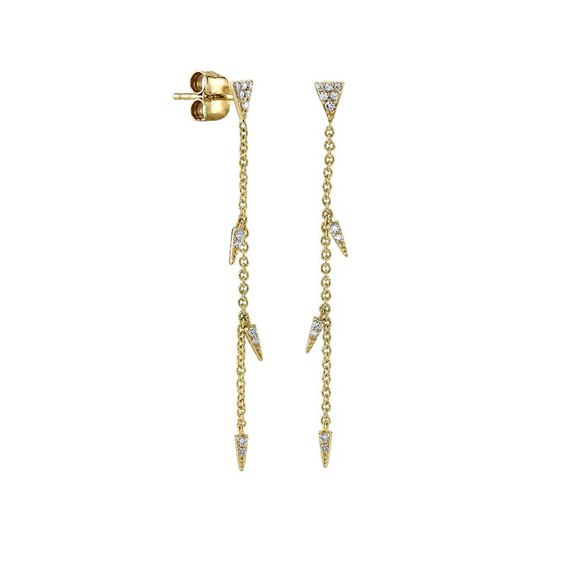 14kt. yellow gold pave diamond fringe style drop chain earrings by Sydney Evan.