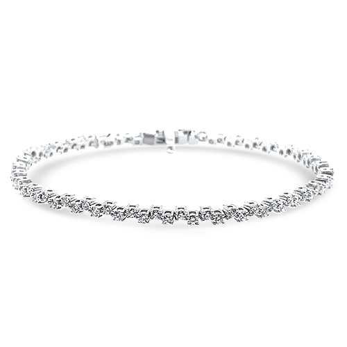 This 18kt white gold diamond bracelet features 80 round brilliant diamonds in a zig zag pattern totaling 2.20ctw.