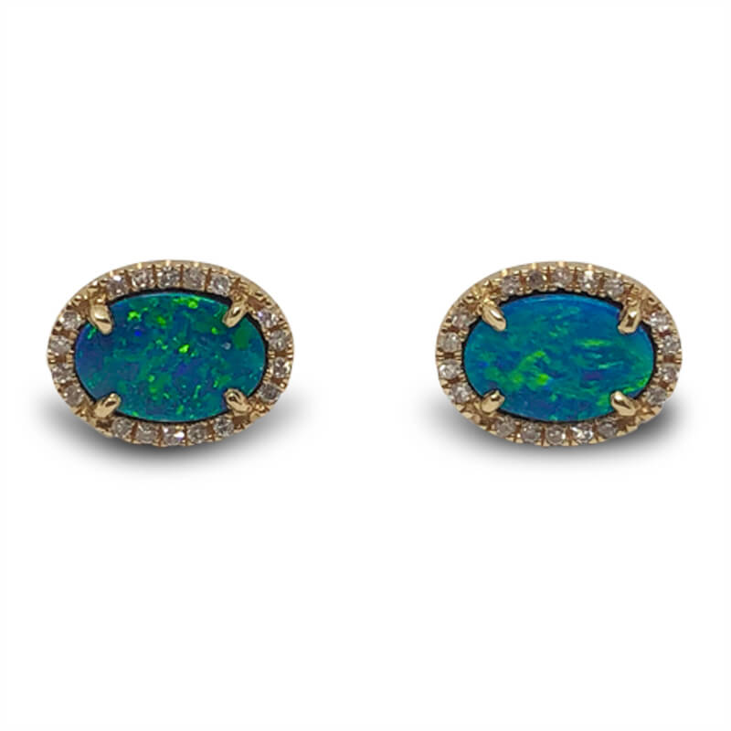 Opal & Diamond Halo Earrings