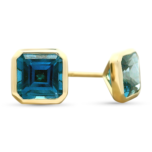 Dressed up or down, this 14kt pair of bezel set emerald cut London blue topaz stud earrings are ready for any occasion!