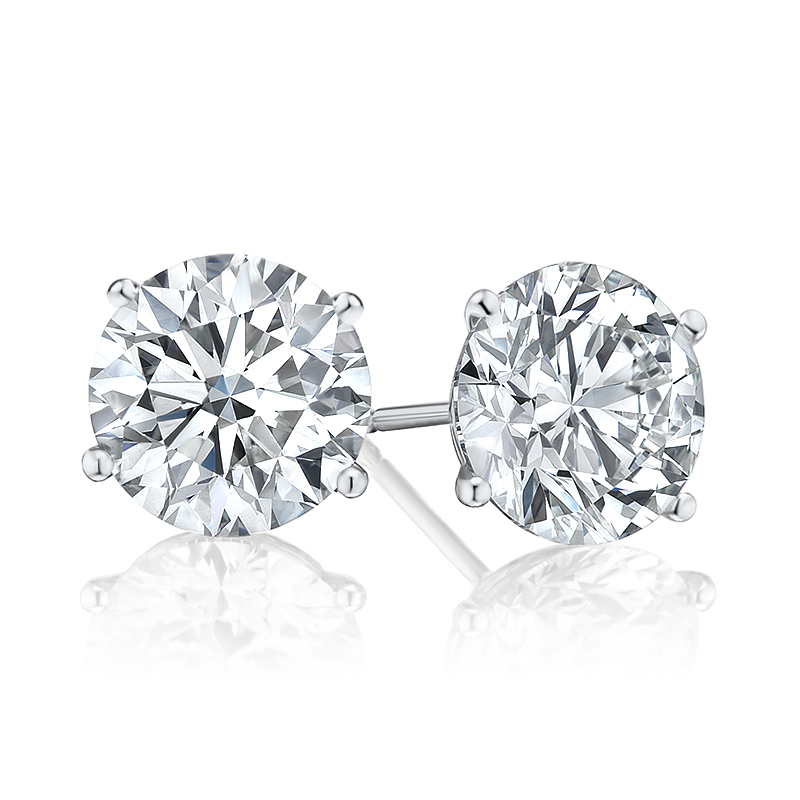 This pair of diamond stud earrings features two round diamonds totaling 2.44ctw. They have been graded by our in house certified gemologist to have very good cut grades, J colors and SI1 & SI2 clarities. The diamonds are mounted in 14kt white gold 4 prong martini profile studs with friction posts and backs. In addition, these diamonds are eligible for our grow a diamond program.