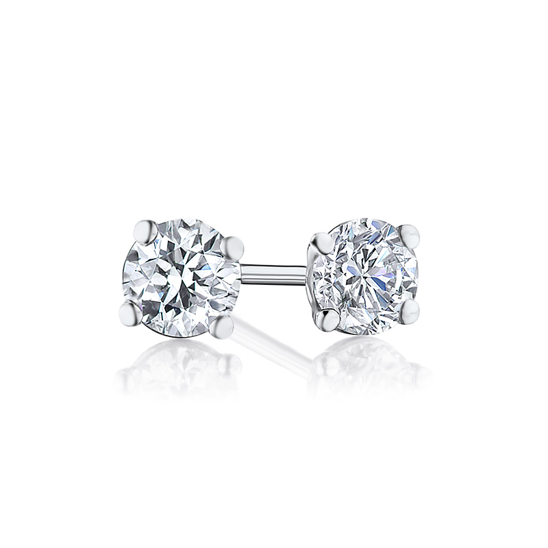 This pair of diamond studs features two round diamonds totaling.59ctw. They have been graded by our in house certified gemologist to have good cut grades, K colors and VS2 clarities. The diamonds are mounted in 14kt white gold 3 prong martini profile studs with friction posts and backs. In addition, these diamonds are eligible for our grow a diamond program.