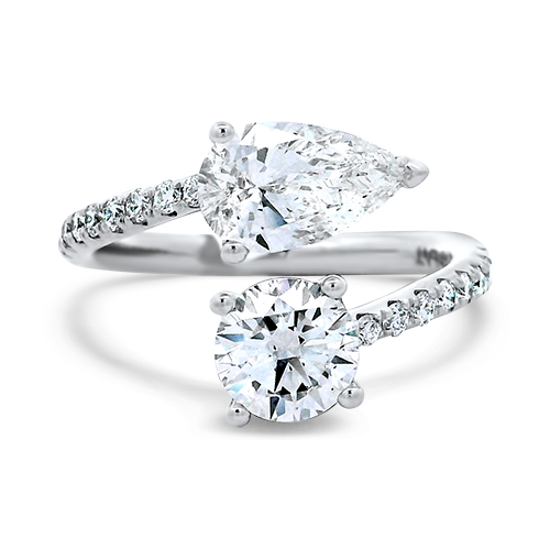 1.01ct Pear Shape & 0.90ct Round “Toi Et Moi” Diamond Bypass Ring