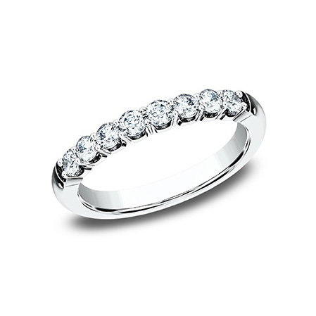 18kt. white gold 2.5mm diamond band. This ring features eight round brilliant cut diamonds at .48ctw. Size 6.5