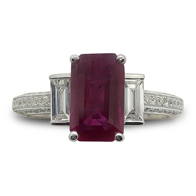 Emerald Cut Ruby & Baguette Diamond Ring