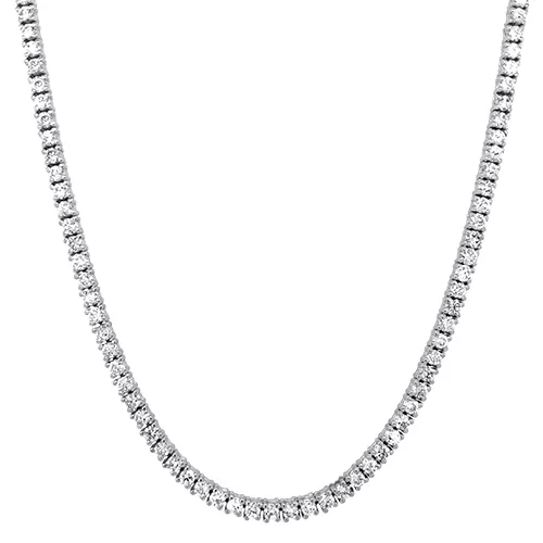 This 14kt white gold adjustable straight line diamond necklace features 109 round brilliant diamonds totaling 5.27ctw.