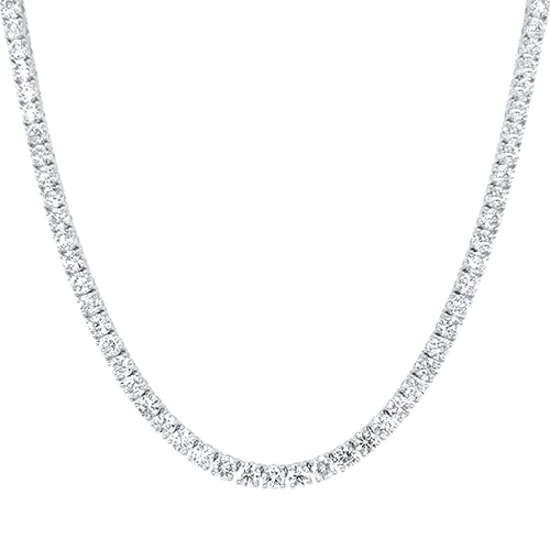 This stunning diamond line necklace measures 17″ and features 113 round brilliant diamonds totaling 22.33ct.