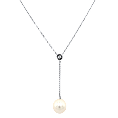 This sterling silver diamond and fresh water pearl necklace measuring 18″ to 20″ in length adds the finishing touch to your outfit!