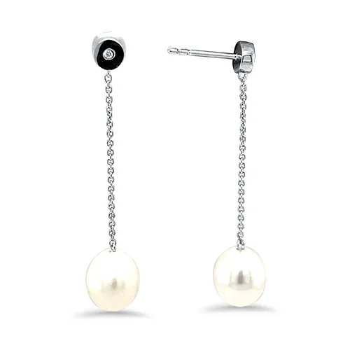 Go ahead and add this classic pair of sterling silver diamond and pearl dangle earrings to your jewelry box, along with the matching necklace – item #301016309.