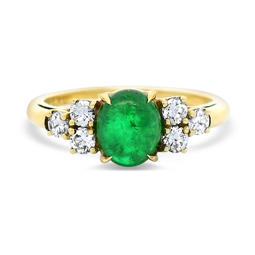Estate Cabochon Emerald & Diamond Ring