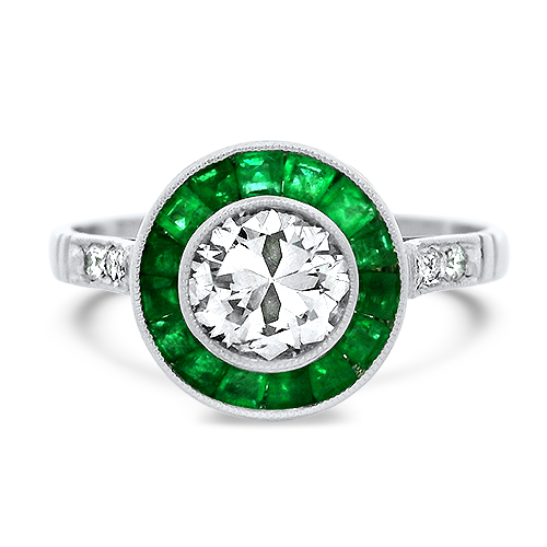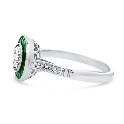 Platinum Diamond Ring with Emerald Halo