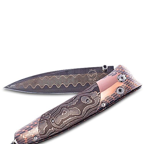 The GenTac ‘Super Conductor’ features a amazing frame in Copper Niobium (‘superconductor’), inlaid with a ‘Copper’ carbon fiber scale. The blade is in black-coated ‘Wave’ damascus extra strong core in VG-10. The one-hand button lock and the thumb stud are set with spinel gem stones. The GenTac is an elegant synthesis of dramatic lines, graceful curves, and exquisite materials. A bold interpretation of a timeless design, the ‘Super Conductor’ is a rare and captivating personality statement to be worn and used for a lifetime before being handed down to another generation. Limted edition of 8 pieces.